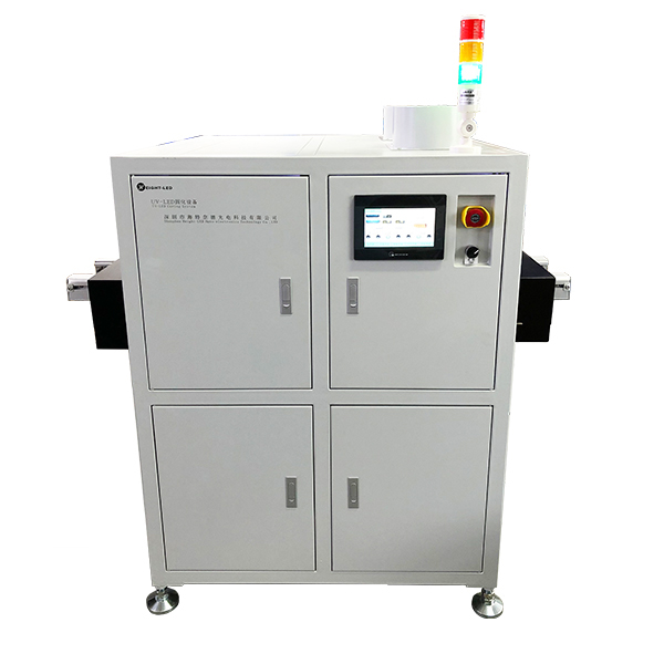 這是一款針對于PCB三防膠uv固化而設(shè)計的高性能鏈條式UVLED固化機。該UV設(shè)備主要包含控制系統(tǒng)、UVLED照射頭及雙軌道鏈條式輸送帶,采用上下兩個260X160mm的面光源照射,可手動調(diào)節(jié)軌道寬度,雙通道PLC控制,整機及光源面積均可定制。