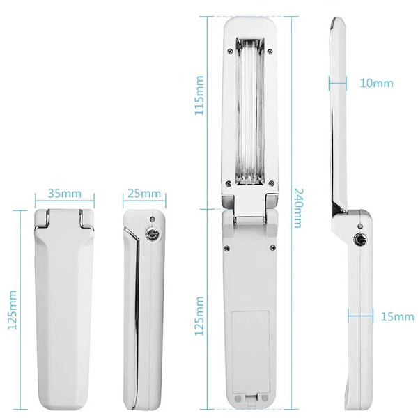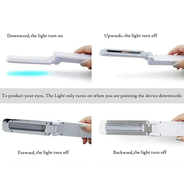The handheld foldable UV Germicidal Lamp is small, light and convenient to carry; it is easy to use and one-button sterilization; the design is safe and prevents accidental injury; suitable for sterilization and sterilization of various objects.