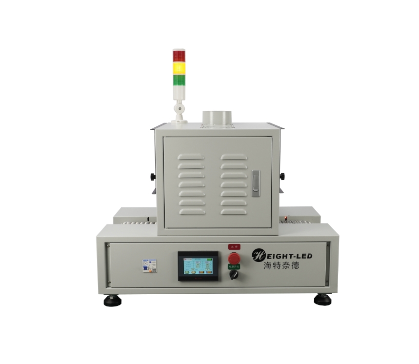 2. equipment to provide continuous mode and back-end mode optional, continuous mode, click the start button, UV machine conveyor belt and UVLED has been working, click the stop button to stop the UV machine work; back-end mode, click the start button, the UV machine conveyor belt and the UVLED began to work, when the back-end sensor sensor to sense the product, the conveyor belt and the UVLED to stop working when the product is taken away to continue to enter the next cycle. The product is taken away and continues to enter the next cycle.